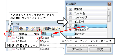 関数一覧 パネル/変数一覧 パネル上の表示項目(列)の順序を並び替えることができます。