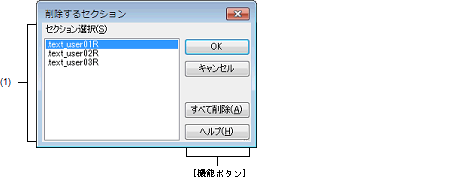 本ダイアログをクローズし,選択したセクションをセクション設定 ダイアログのアドレス-セクション・エリアから削除します。 セクション・グループ(アドレスと属するセクション)に属するセクションがなくなる場合は,そのセクション・グループを削除します。 |