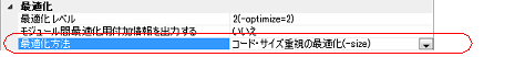 [最適化方法]プロパティ(コード・サイズ優先の場合)