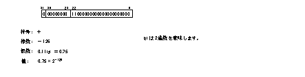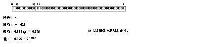 仮数部は、1〜223-1で、実際の仮数は、223のビットを0と仮定し、その直後に小数点があるものとして解釈します。