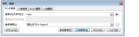 検索・置換 ダイアログでは,[一括検索]タブ/[クイック置換]タブ/[一括置換]タブを選択することにより,その他様々な検索/置換操作を行うことができます。 |