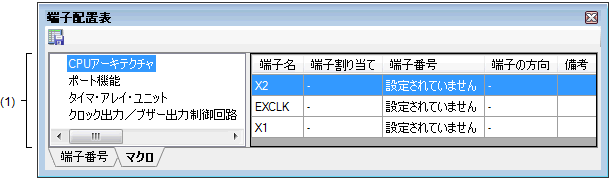 マイクロコントローラの各端子に関する情報を記述するための“端子配置表”を表示します。