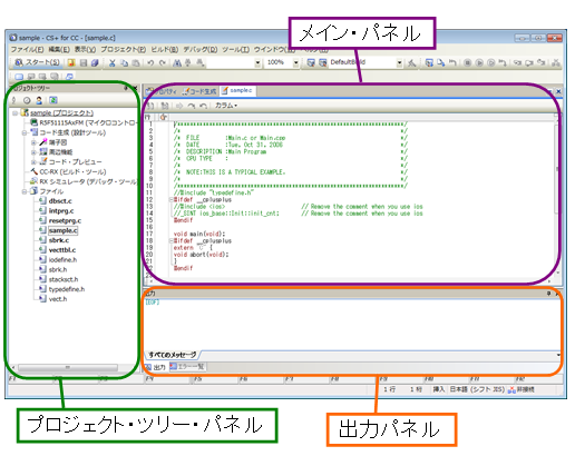 プロジェクト・ツリー・パネル :システム開発のフロー順に,CS+の機能を表示します。