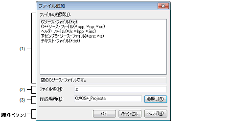 入力したファイル名でファイルを作成して,プロジェクトに追加し,エディタ パネルでオープンします。そののち,本ダイアログをクローズします。