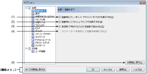 図 A.41 | オプション ダイアログ([全般 - 起動と終了]カテゴリ) |