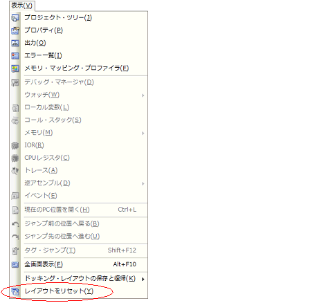 の[表示]メニューの[レイアウトをリセット]を選択すると,ウインドウ・レイアウトを初期状態に戻すことができます。