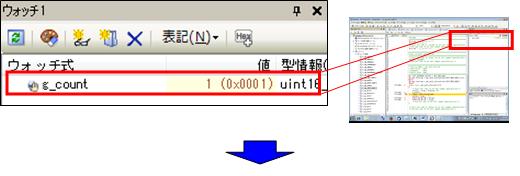 ウォッチ・パネルを確認すると,[g_count]の値が1にカウント・アップされています。