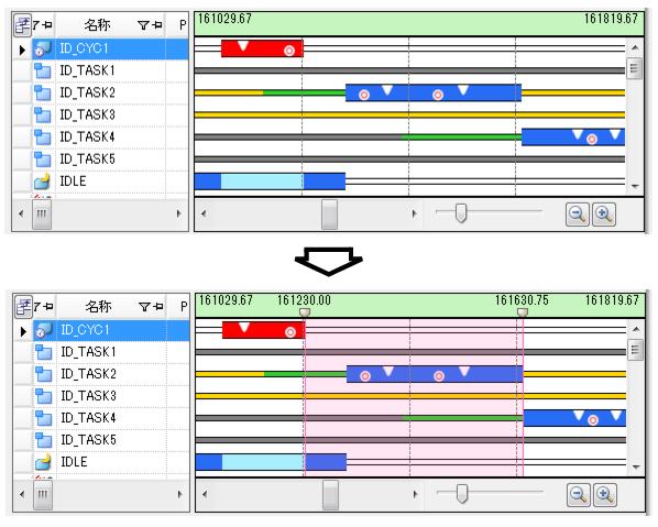 に表示する解析情報を“トレース・データの取得期間の解析情報”から“解析情報抽出区間の解析情報”へと更新することができます。
