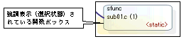 なお,コール・グラフ内の任意の関数ボックスをクリックすることでも該当関数が強調表示(選択状態)され,該当関数名がこのコンボ・ボックスに反映されます( ボタンによりマウスのドラッグによるスクロールを許可している場合を除く)。