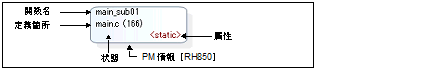 選択しているマイクロコントローラがマルチコア対応版で,[親関数名]コンボ・ボックスにおいて“PMn”を指定した場合では,該当PMn/PEnで実行される関数のみを対象としたコール・グラフを表示します。