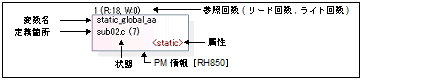 変数ボックスをダブルクリックすることにより,該当変数が定義されているソース・テキスト箇所へジャンプすることができます(「2.7 定義箇所へジャンプする」参照)。