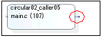 たとえば,3つの関数としてA,B,Cがあり,A→B→C→Aと呼び出している場合では,“A→B”と“B→C”についての接続線は表示しますが,“C→A”についての接続線は表示せず,循環していることを示す次の線分のみを表示します。