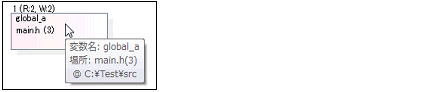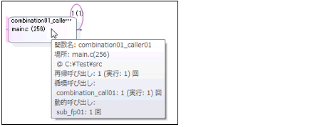 なお,循環呼び出しとなった関数についての情報は,ポップアップ表示で確認することができます。