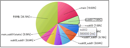 取得した関数情報において,関数の実行時間の割合を円グラフで表示します。