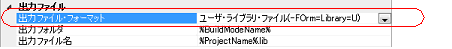 プロジェクト・ツリーでビルド・ツール・ノードを選択し,プロパティ パネル[ライブラリ生成オプション]タブを選択します。[出力ファイル]カテゴリの[出力ファイル・フォーマット]プロパティにおいて,ファイルのフォーマットを選択してください。
