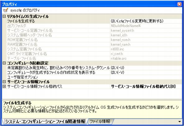 リアルタイムOS生成ファイルを生成するかどうか,およびシステム・コンフィギュレーション・ファイルを変更した場合にリアルタイムOS生成ファイルを更新するかどうかを選択します。