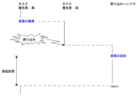isig_semなど)”が発行された場合には,キュー操作,カウンタ操作などといった処理を行うだけであり,実際のディスパッチ処理は,非タスクからの復帰命令(return命令の発行など)が発行されるまで遅延され,一括して行うようにしています。