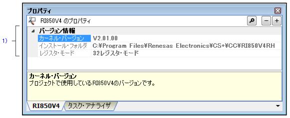 プロジェクト・ツリー パネル上において,リアルタイムOSノードを選択したのち,[表示]メニュー→[プロパティ]を選択,またはコンテキスト・メニュー→[プロパティ]を選択