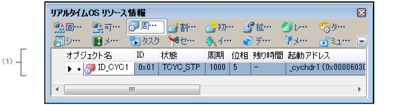- [表示]メニュー→[リアルタイムOS]→[リソース情報]を選択