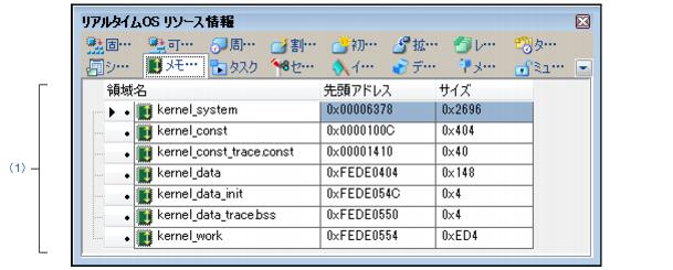 備考 メモリ・エリア情報(領域名,先頭アドレスなど)の各セルをダブルクリックした際には,管理対象メモリ領域の内容をメモリ パネルに表示し,該当部にキャレットを移動します。