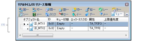 RI850V4のミューテックス情報(オブジェクト名,IDなど)を表示します。