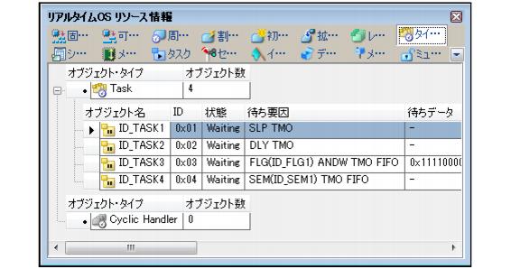 - [表示]メニュー→[リアルタイムOS]→[リソース情報]を選択