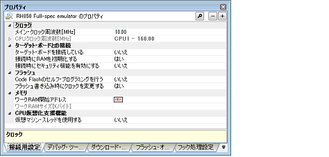 動作環境設定【Full-spec emulator】(プロパティ パネル)