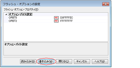 マイクロコントローラに搭載されているフラッシュ・メモリのためのオプション設定を行います。