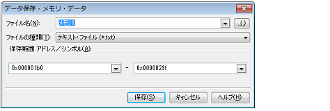 [ファイル]メニュー→[名前を付けてメモリ・データを保存...]を選択すると,次のデータ保存 ダイアログがオープンします(この際,パネル上で範囲選択した状態でこの操作を行うと選択範囲のみのメモリ・データを保存することができます)。