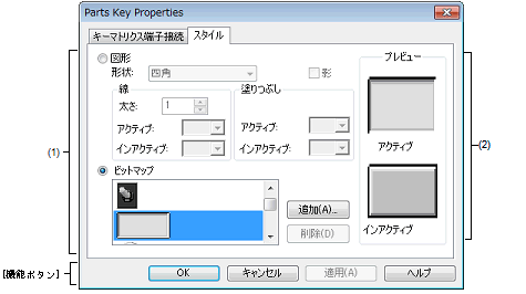 なお,キー・マトリクスの表示スタイルには,図形とビットマップの2種類があり,これらスタイルの変更は[[スタイル]タブ]で行います。