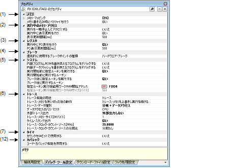なお,このプロパティは,[トレース機能の用途]プロパティにおいて[リアルタイムRAMモニタ]を指定し,且つ[実行中に表示更新を行う]プロパティにおいて[はい]を指定した場合のみ表示されます。 |