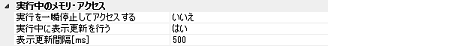 なお,[実行中に表示更新を行う]プロパティにおいて指定値を[いいえ]から[はい]へ切り替えた場合,このプロパティには前回の設定値が表示されます。