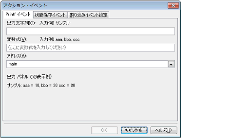 Printfイベントを設定する(アクション・イベント ダイアログ:[Printfイベント]タブ)