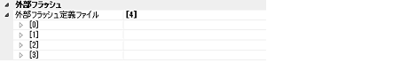 外部フラッシュ定義ファイルの“+”マークをクリックすると,インデックス([1]〜[4])毎に定義ファイル名,開始/終了アドレスおよびダウンロード前に外部フラッシュROMを消去するか否かの選択状況を表示します。