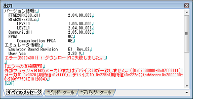 メーカIDまたはデバイスIDが不一致の場合,リードした値と期待値が出力 パネルに表示されます。 |