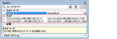 ビルド時(E.5.1 ビルドを実行する」参照)に実行するコマンドを,[プロジェクトのビルド時に実行するコマンド]プロパティで設定します。