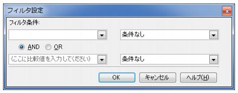 のコンボ・ボックス(左側)は“空欄”,コンボ・ボックス(右側)は“条件なし”としてください。