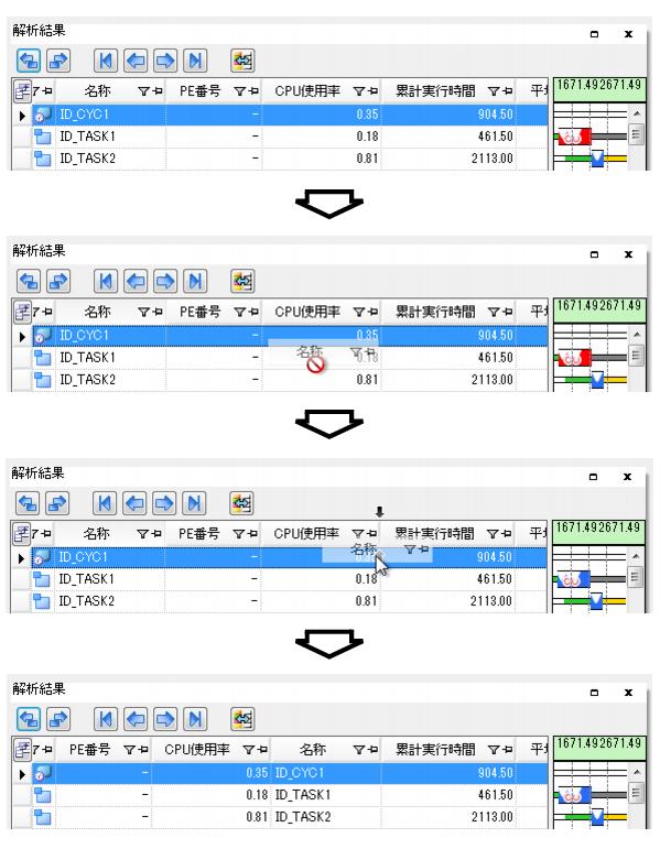 の列をドラッグしたのち,移動先にドロップすることにより,項目の並び順を変更(列を移動)することができます。