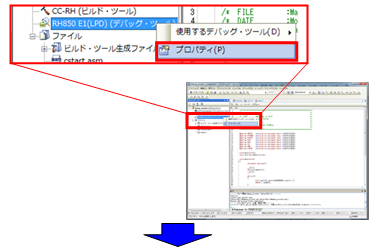 プロジェクトツリーのデバッグツール上で右クリックして、[プロパティ]を選択してください。 |