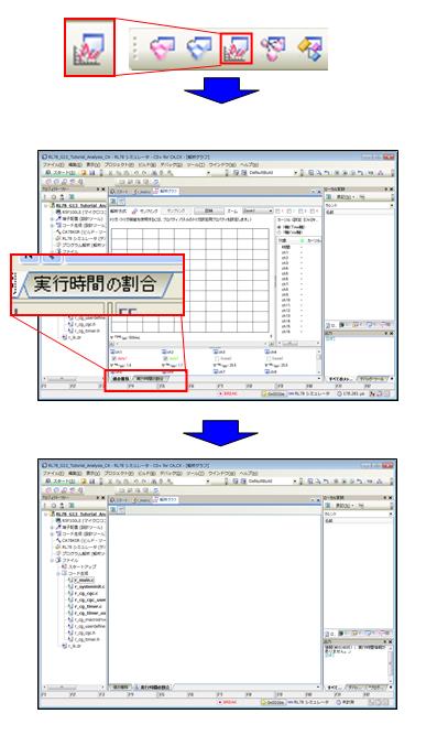 [解析グラフ・パネル]ボタンをクリックして,解析グラフを開き [実行時間の割合]タブをクリックしてください。 |