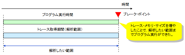 これまでに説明したとおり,解析したい範囲に対して,解析データ(デバッグ・ツールのトレース・メモリ)が適切か確認することが重要です。