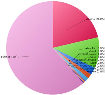 表示された解析グラフを見てください。サンプル・プログラムの想定としては,func1aの割合がfunc2aよりも割合が大きくなります。しかし解析グラフでは,func2aの割合が,func1aの割合よりも大きくなっています。