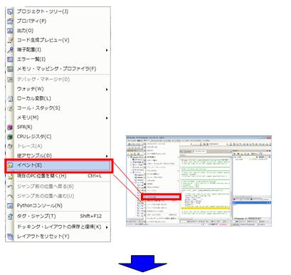 イベント・パネルが表示されるので[ハードウエア・ブレーク0001]を選択してください。 |