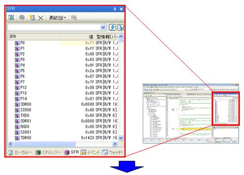 マイコンの内蔵周辺機能を動作させるレジスタの値が表示されます。見やすいようにフローティングさせてみましょう。