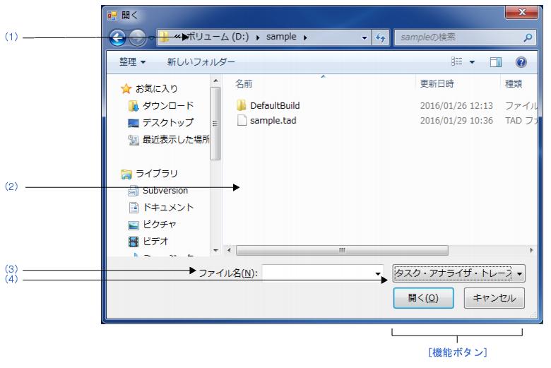 読み込むファイルの種類として,“タスク・アナライザ・トレース・データ(*.tad)”を選択します。