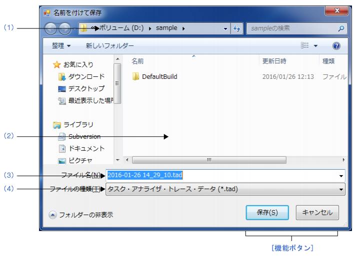 保存するファイルの種類“タスク・アナライザ・トレース・データ(*.tad)”を選択します。