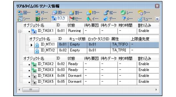 - [表示]メニュー→[リアルタイムOS]→[リソース情報]を選択