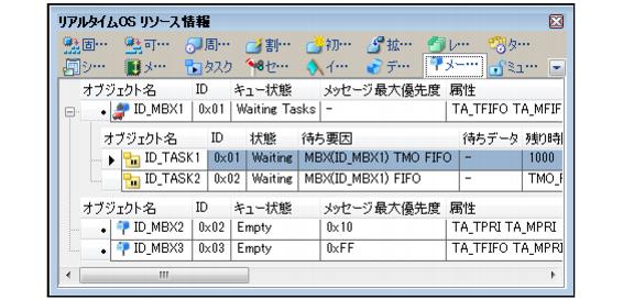 メールボックスにタスクがキューイングされている場合に限り,待ちタスク情報(オブジェクト名,IDなど)を表示します。