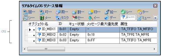 なお,メッセージのキューイング方式が“メッセージの送信要求を行った順TA_MFIFO”の場合には,“-”が表示されます。