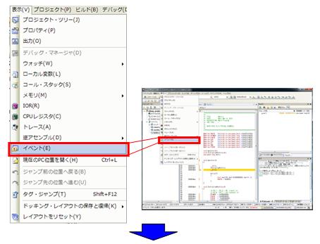 イベントパネルが表示されるので[ハードウエアブレーク0001]を選択してください。 |